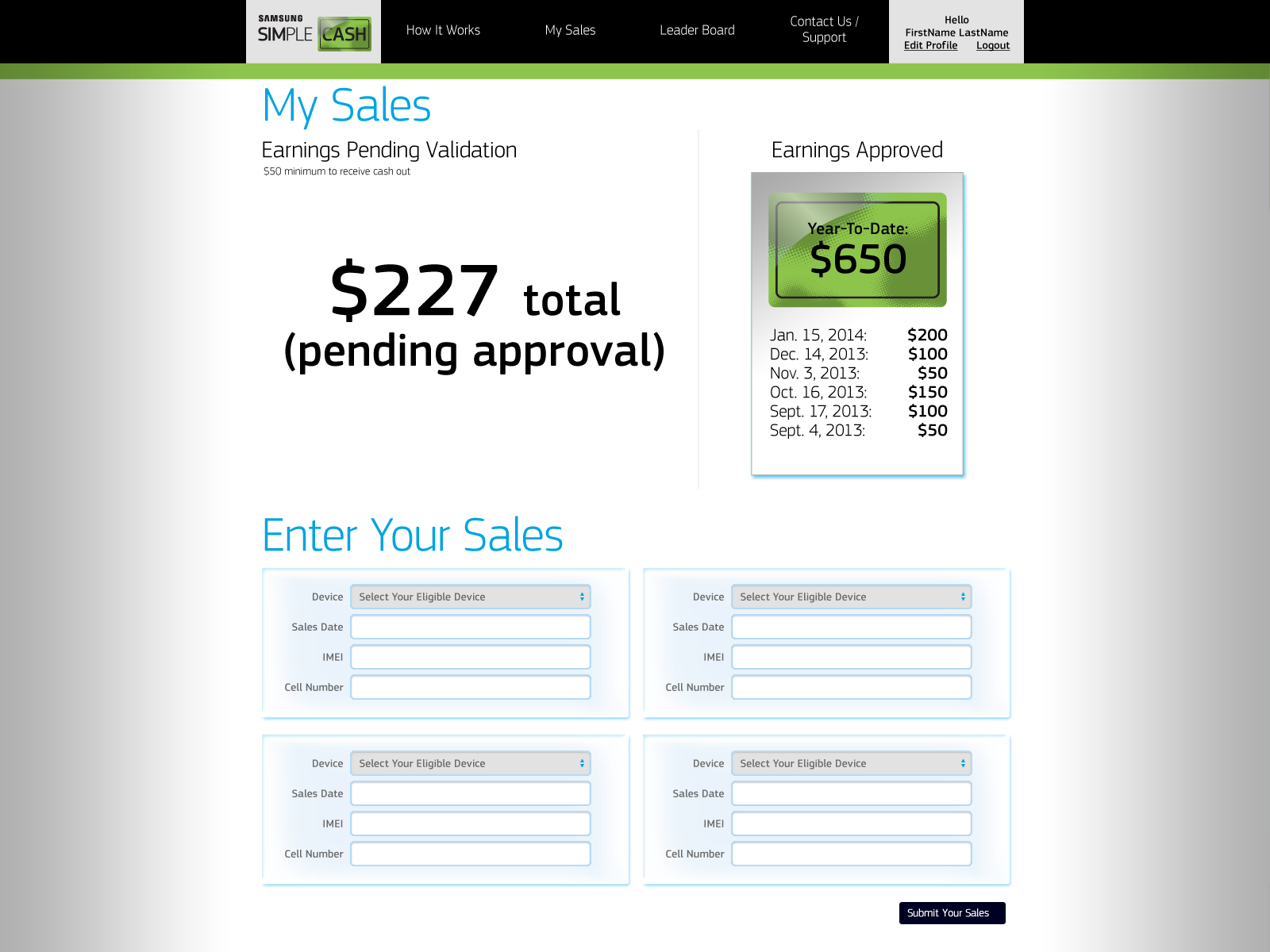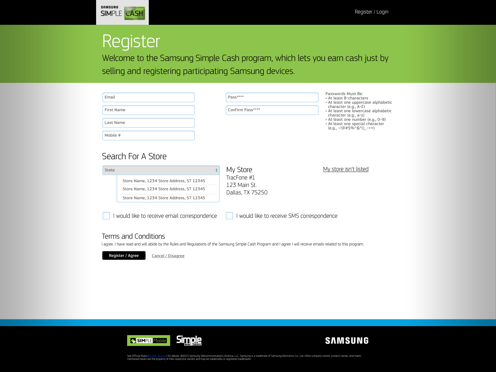 Samsung/SimpleCash Sales Promotion Website