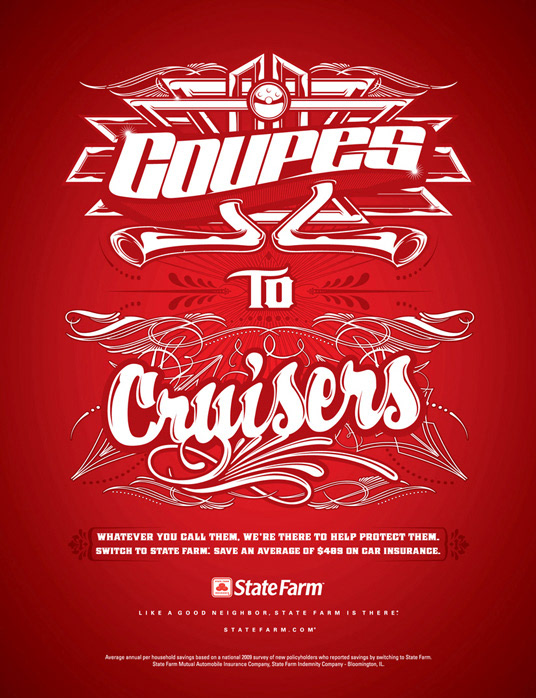 State Farm print campaign. Concept - Cars are like pieces of art, so this campaign takes some commonly used names for cars and treats them like pieces or art. No matter what you call your ride, State Farm is there to protect it. (This campaign also has TV and web banners.)